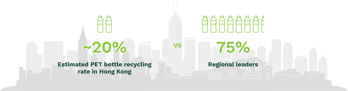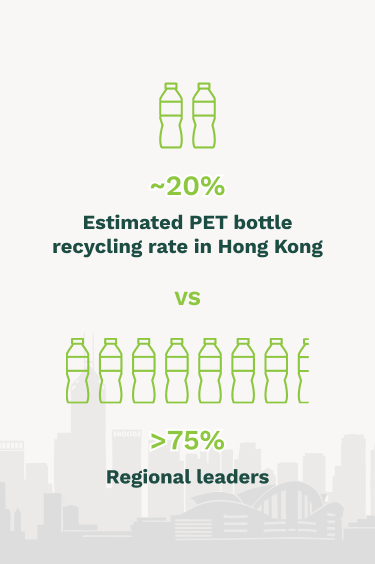 At present, Hong Kong’s PET bottle recycling rate is estimated at around 20%, well behind regional leaders that achieve over 75%. The reasons are not down to one single issue. They sit across three connected areas: policy and economics, collection and logistics, and material quality.